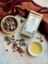Mugwort (Artemisia vulgaris) is the wisdom keeper of dreams. The silvery underside of her elegantly feathered leaves connects her to the inward energy of the moon. Artemis is the Goddess of the forest and the hunt, she knows how to travel well in the mysterious deep woods and is familiar with the beings and creatures who live therein. Mugwort invites you to deepen your connection with your dream maker, to dive deeper into the vivid dreamscapes of your soul and to remember many details of your journey when you return. Rose holds your heart gently during your travels, lavender eases tension and helps to fall asleep. Chocolate mint adds some spice to the tea and harmonizes the energies of the blend.